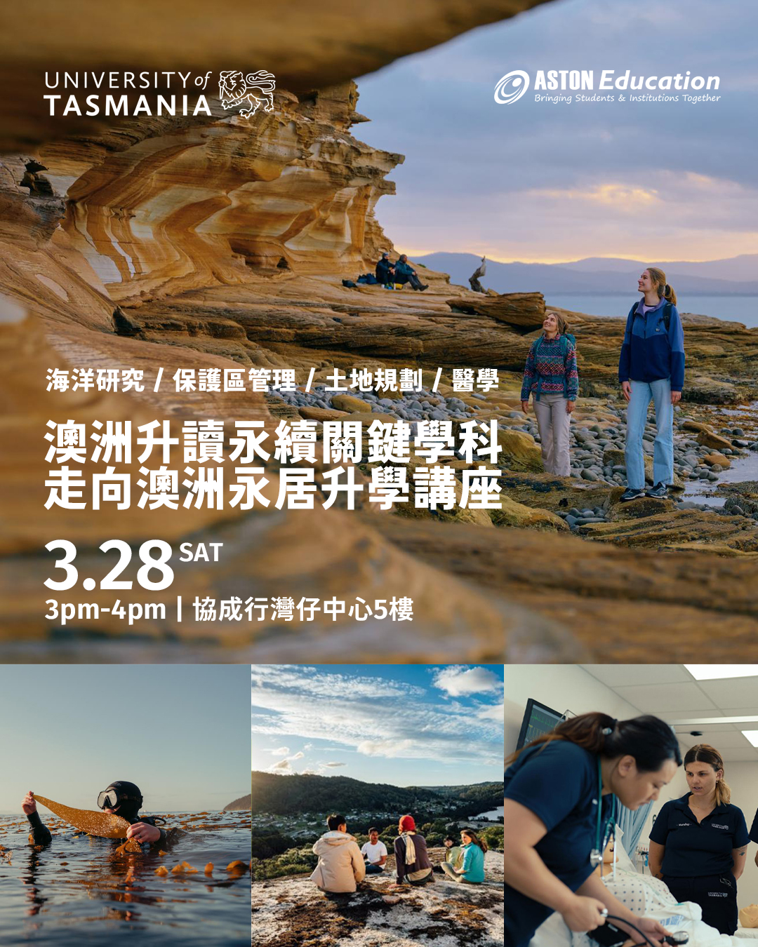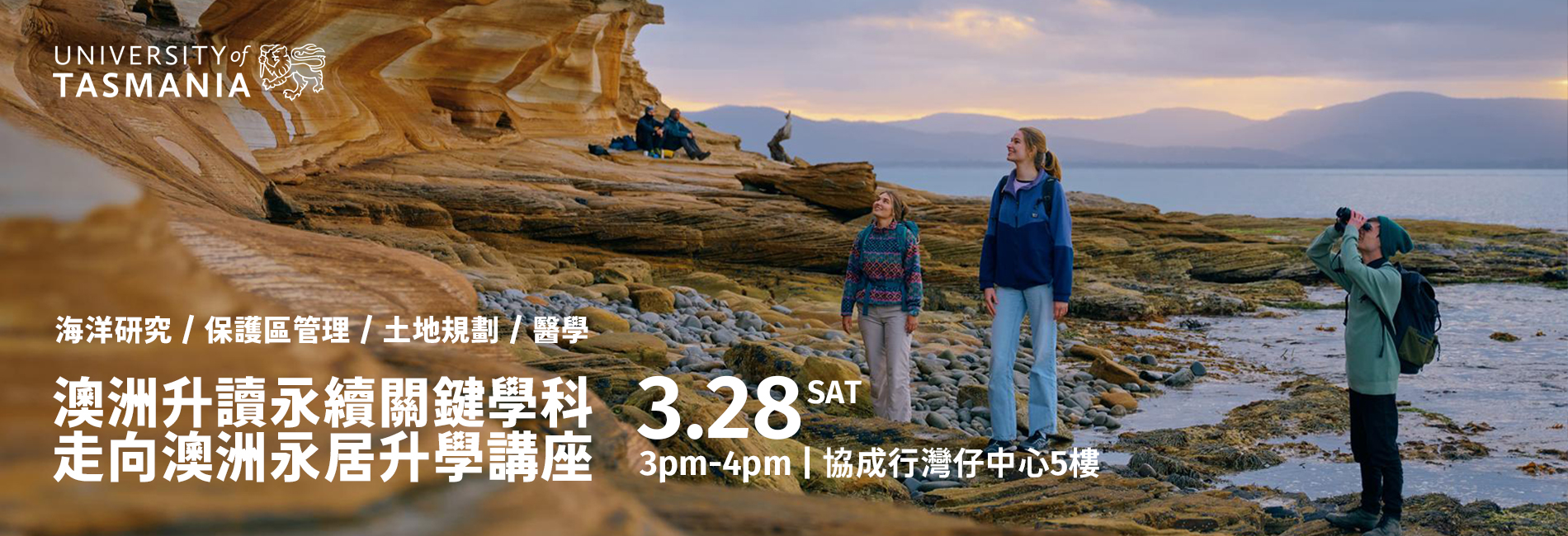 是次講座,我們特別邀請 University of Tasmania 學校代表,舉行一小時專場講座,全面介紹課程特色、入學要求及畢業出路。名額有限,立即報名!
