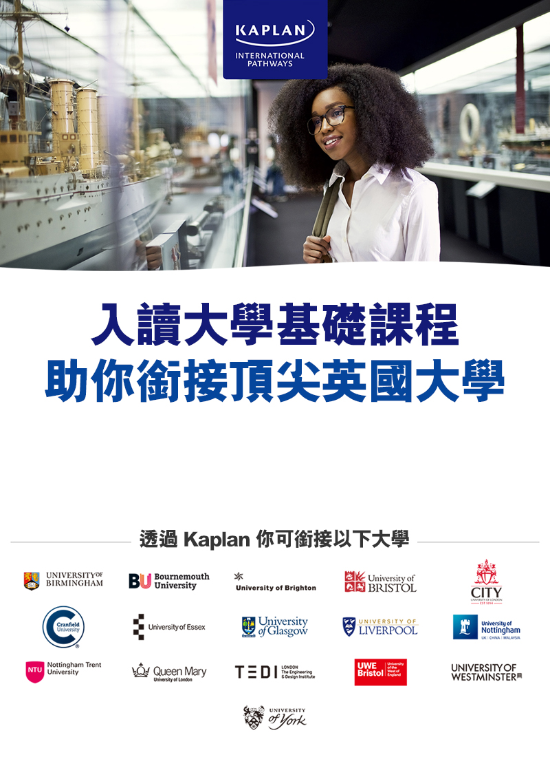 英國院校 Kaplan International Pathways 代表超過10間英國大學的銜接課程,當中代表不少英國頂尖大學聯盟 Russell Group 的大學成員,例如 University of Birmingham、The University of Liverpool 、University of Glasgow、University of Nottingham 及 University of York。想了解更多銜接選擇?院校代表會為你逐一講解各大學最新收生走勢!