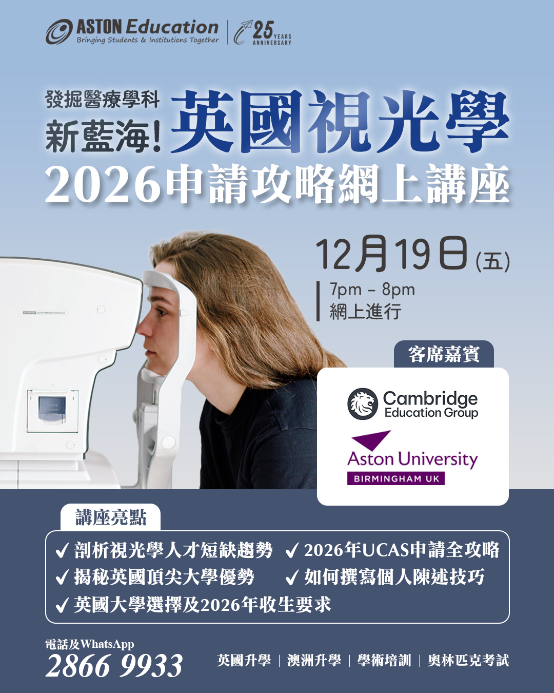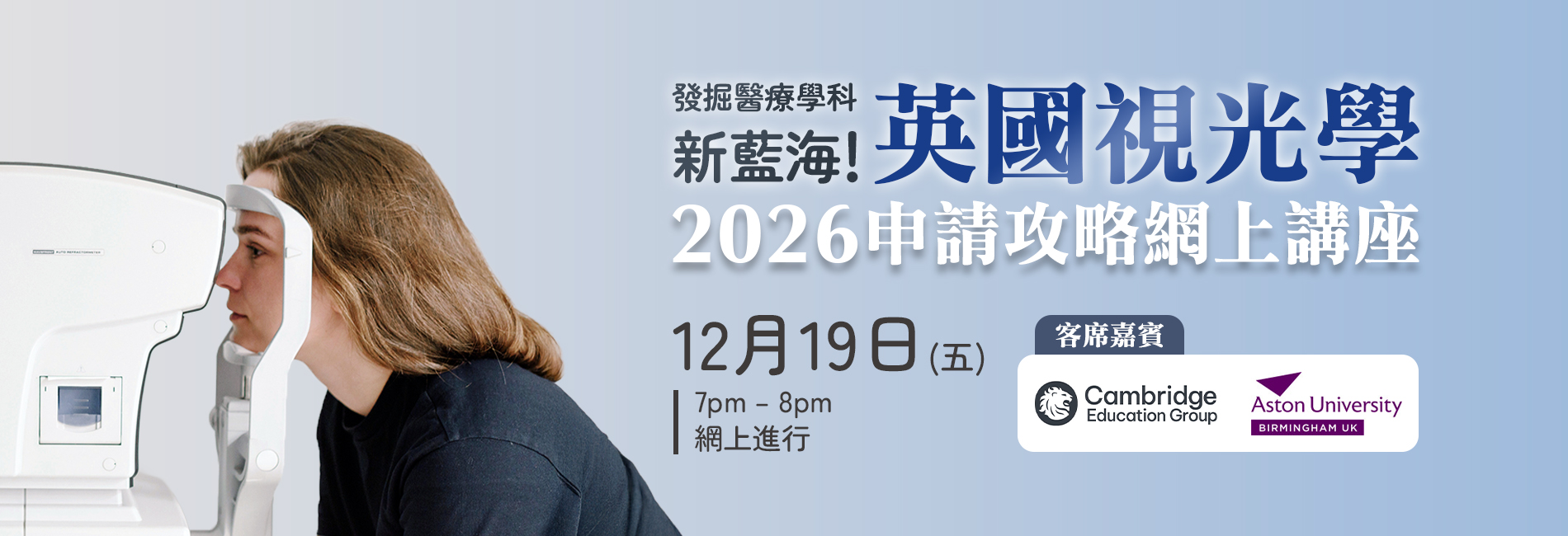 英國視光學2026年申請攻略網上講座